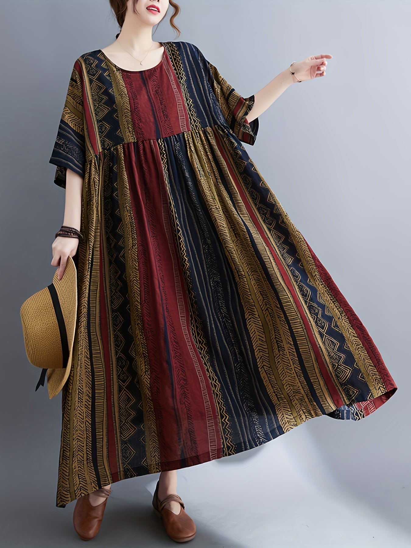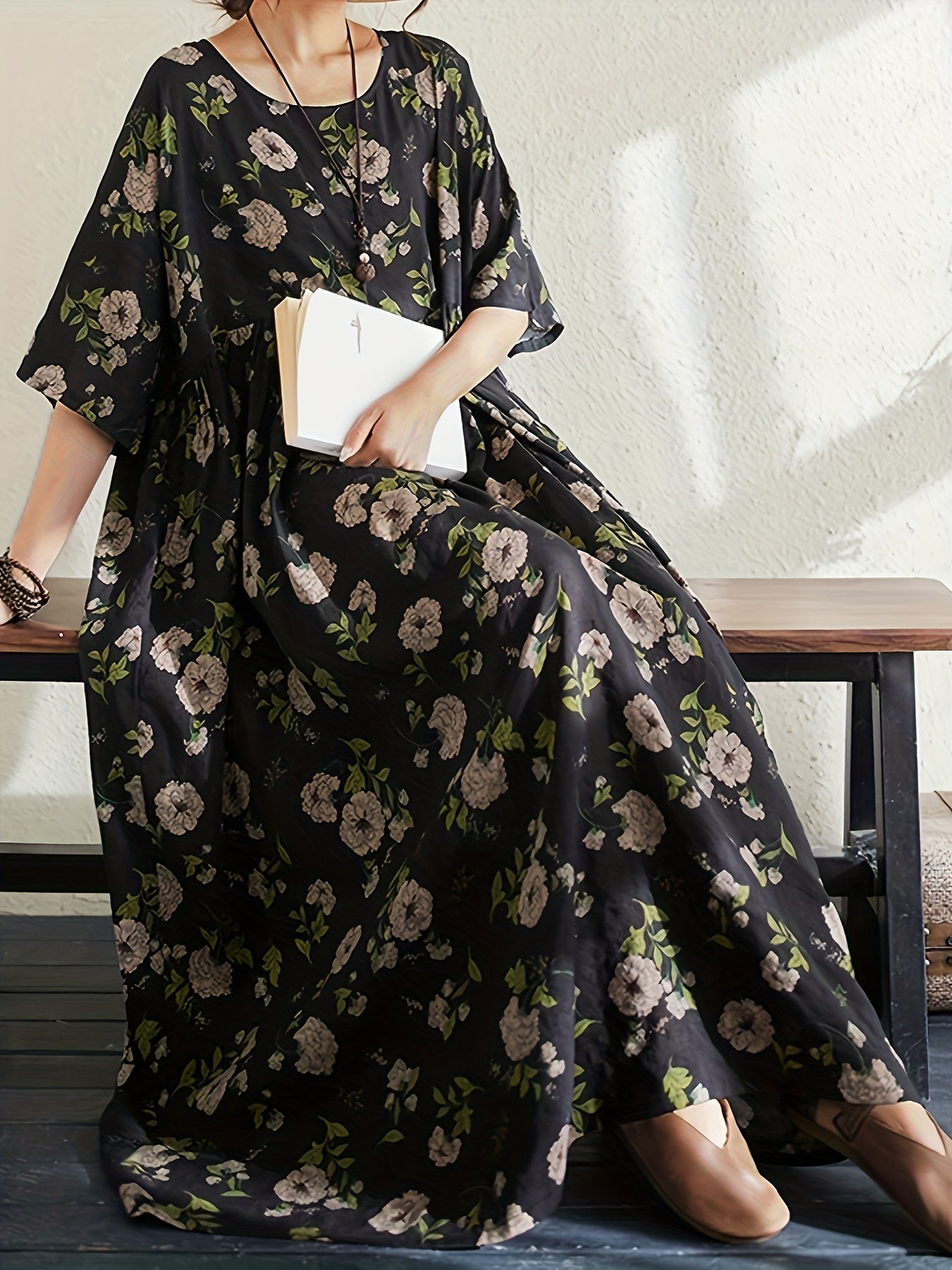 THHONE Vestidos رداء ماكسي فستان طويل المرأة الصيف الملابس الهندية البوهيمي القطن الكتان الأزهار قصيرة الأكمام الكورية نمط عادية