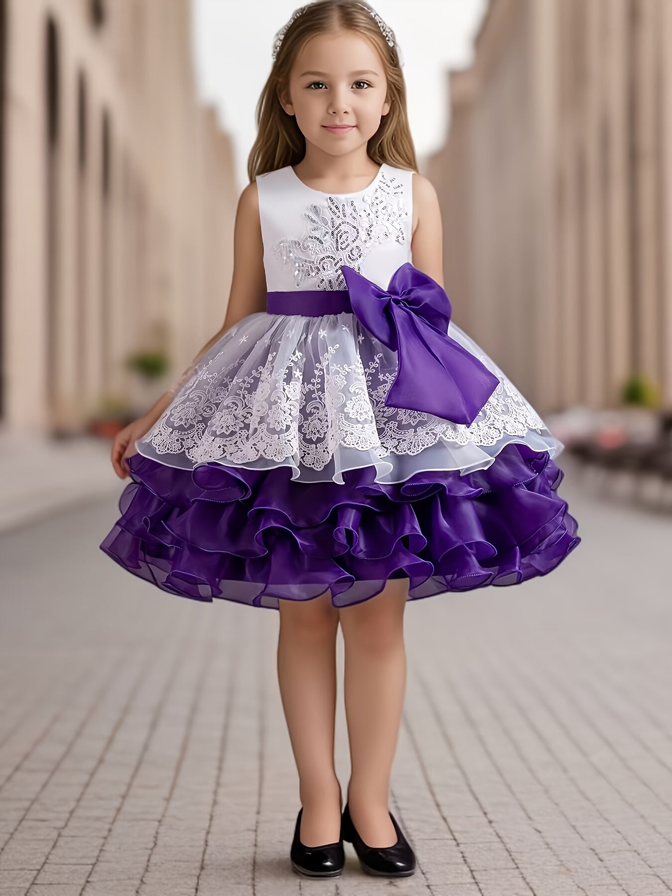 فستان توتو الأميرة الرائعة للفتيات الجميلات بدون أكمام مزين بقوس وتفاصيل شبكية للحفلات والعروض والهدايا الزفاف