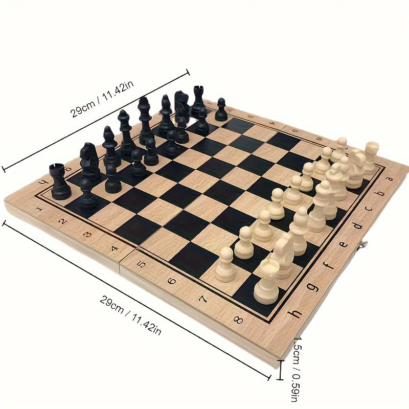 مجموعة شطرنج خشبية 3 في 1، لوح قابل للطي محمول مع فتحة تخزين، هدية عيد ميلاد محمولة للمبتدئين، ألعاب الحفلات
