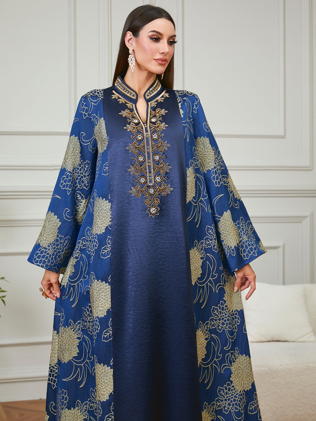 Outong 3 قطع فستان على الطراز الإسباني بطانة قطنية من قماش الجاكار للفتيات والأطفال ملابس عصرية فساتين للأطفال معطف بياقة الماندرين