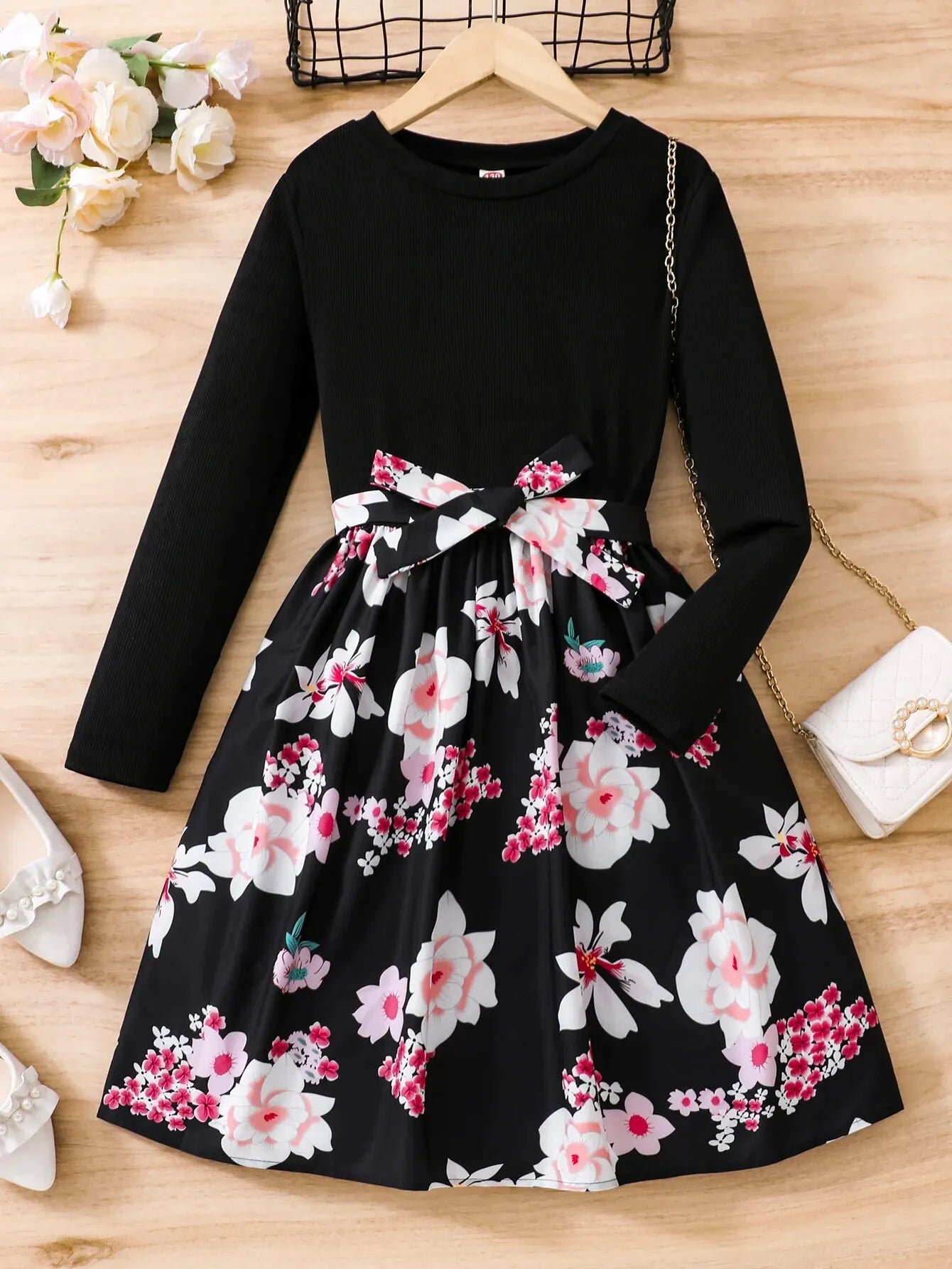 فستان Girl Blossoms بأكمام طويلة على شكل حرف A لمظهر أنيق وكاجوال، هدية ملابس للأطفال