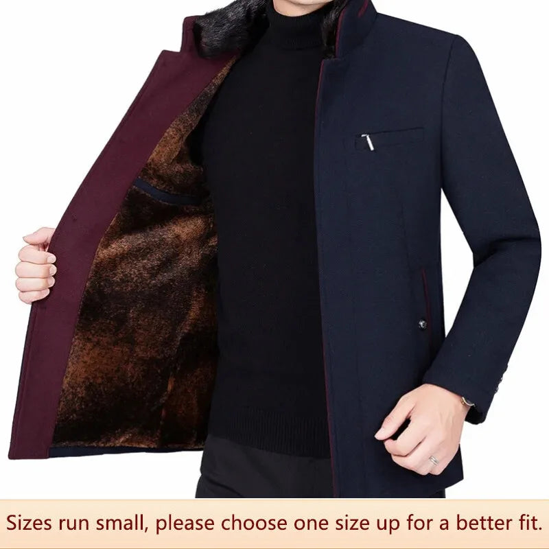 الرجال الصوف سترة الكشمير المعنقة الخريف الشتاء نمط الوقوف طوق ملابس أبي عادية معطف الصوف سميكة الصوف بطانة