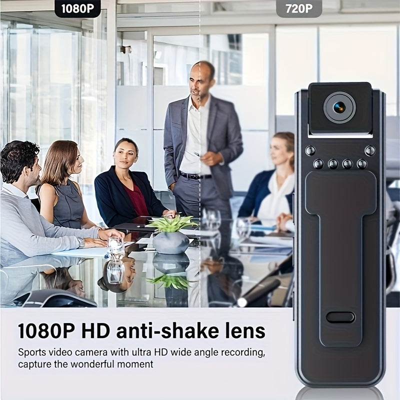كاميرا فيديو HD 1080P بمشبك صغير، مشبك جيب ذكي، تسجيل بلمسة واحدة مع رؤية ليلية بالأشعة تحت الحمراء، صوت وتصوير احترافي، تشمل 6 مصابيح للرؤية الليلية، تركيز تلقائي، محمولة باليد، مناسبة للمؤتمرات والتنزه والجري والحيوانات الأليفة والمزيد