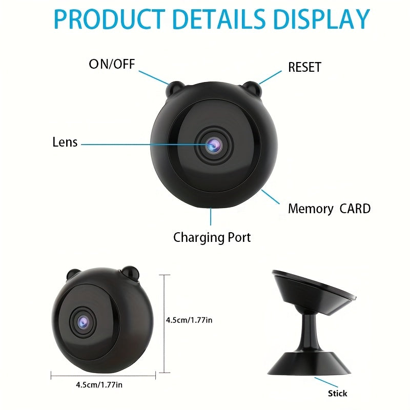 كاميرا أمان صغيرة مغناطيسية مع واي فاي، دقة 480P عالية الدقة، كشف الحركة ورؤية ليلية - تعمل بالبطارية/الـ USB للمنزل والحيوانات الأليفة، استخدام داخلي/خارجي، مراقبة الحيوانات الأليفة | تصميم مينيماليستي | صور عالية الجودة، كاميرا لاسلكية صغيرة