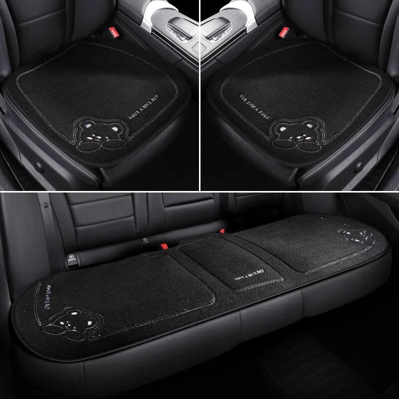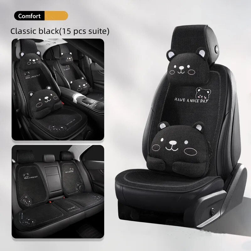 جديد جودة عالية أسود أربعة مواسم العالمي القطن الكتان الكرتون الدب المرأة الموضة المضادة للانزلاق غطاء مقعد السيارة الواقي